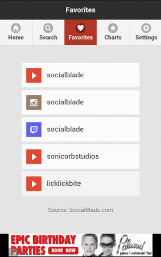 With the Social Bladeapp for android, you can keep track of the stats of your youtube channel (or your favorite youtube creators), twitch channel, and instagram channels. The Social Blade Android app brings the power of the Social Blade website to your android phone, at long last!