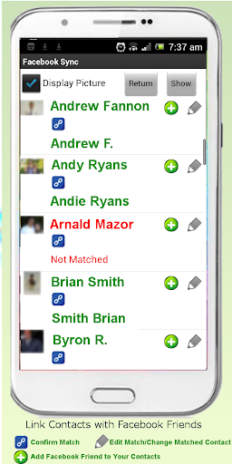 -Option to sync data (photo, birthday) of existing contacts/friends that had been previously matched