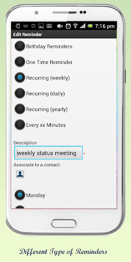 -Link reminder with a contact to show context if you need to call, SMS etc (optional)