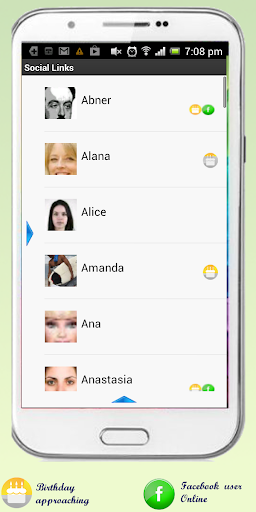 -Wizard to help you sync your friend's pictures and birthday it uses a ranking algorithm to match contacts x friends then you will confirm (or not) the link between each contact and friends one by one avoiding duplication which is a common issue with most social network auto-sync process