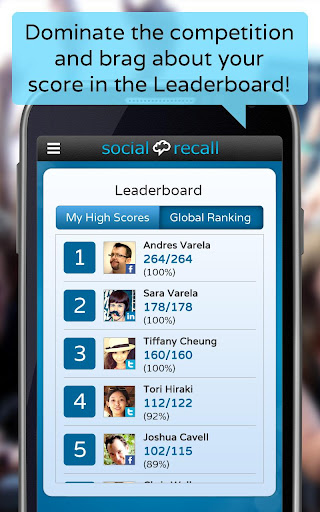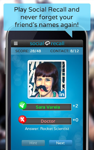 People use Social Recall as a productivity and brain training exercise app to get better at remembering names and faces for work or in their social lives. Others use this fun and engaging social trivia app to learn names so they can show off how well they know their networks!