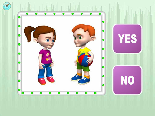 In this interactive app a child is expected to answer in affirmative or negative after watching an animation. Every correct response is rewarded with a colorful animation.