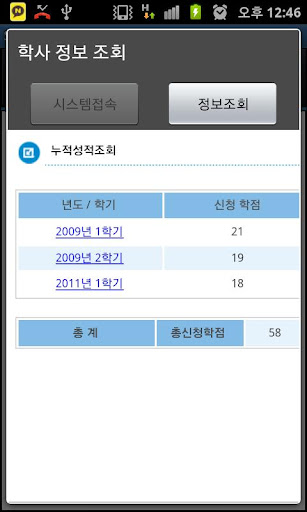 종합정보시스템 - 성적조회, 수강신청(업데이트 예정), 개인신상 조회, 시간표 조회