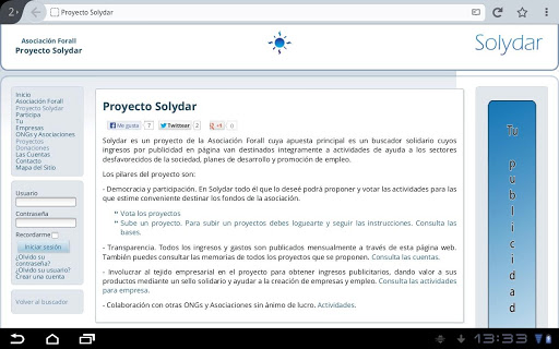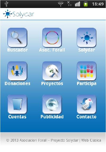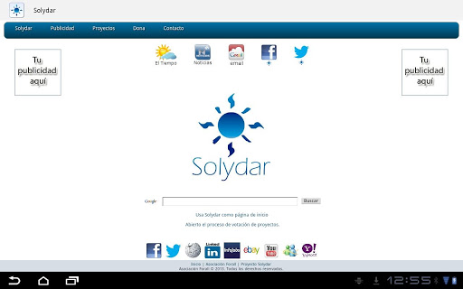 Solydar es un proyecto de la Asociación Forall. Solydar es una página de inicio solidaria cuyos ingresos por publicidad en página van destinados integramente a actividades de ayuda a los sectores desfavorecidos de la sociedad, planes de desarrollo y promoción de empleo.