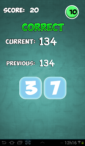 Baixem este divertido aplicativo e estimule seu cérebro e melhore sua capacidade de raciocínio lógico com matemática básica. Iguale o valor anterior (previous) com o valor atual (current) utilizando uma soma simples. Apesar de utilizar uma princípio básico da matemática, este jogo irá melhorar seu raciocínio e te ajudar a pensar com mais rapidez. Desafie seus amigos e divirta-se.