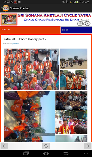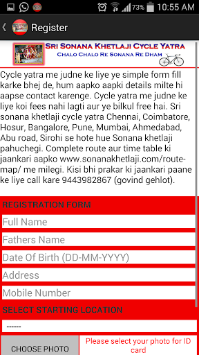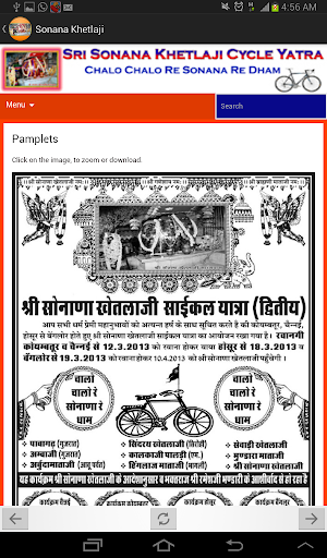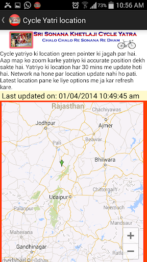 Sri sonana khetlaji cycle yatra app has been created for getting live updates about the cycle yata. With this app you can get latest images, news, videos and other updates from the cycle yatra. With sonana khetlaji app we can also know the current location of the cycle yatris. This app also enables its users to download free bhajans, videos and many more from the website.
