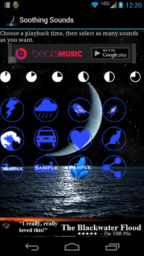 Use this collection of soothing, white-noise style sounds to drown out distracting background noises, help you sleep, relax you in your office cubicle or soothe a colicky baby. You can choose any combination of seven calming sounds, like thunder, rain, forest, traffic, or even a human heartbeat. Select from a number of playback times, or leave the playback times blank and the sounds will run for a default of six hours.