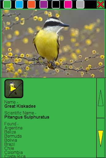 O aplicativo SoundOfBird traz 30 cantos diferentes de passaros de todo o mundo e algumas informações extras, exemplo: onde pode ser localizado, tamanho e peso.