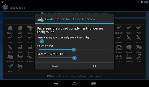 Create pleasing natural soundscapes for blocking irritating extraneous noise, and / or to help with concentration, meditation, relaxation and sleep. Can also be used to mask mild Tinnitus.