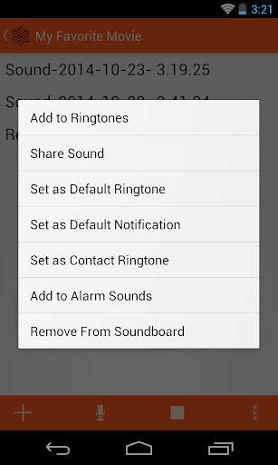 Each soundboard is displayed as a list of sounds. Each sound can be saved as an alarm, notification, or ringtone. Set one of the sounds as a ringtone for a contact right from the app.