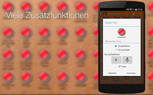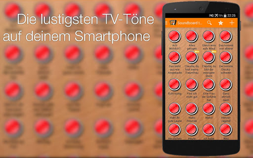 Mit dieser Applikation hast du Zugriff auf mehr als 100 verschiedene Sounds. Darunter diverse Klassiker wie: "Ganz ehrlich neee", "Der reinste Drecksschwein" oder "Mach ich Foto, tu ich facebook". Aber auch echte Geheimtipps sind dabei, so dass keinerlei Luft nach oben besteht. Beste Stimmung ist mit dieser Applikation zu 100% garantiert.