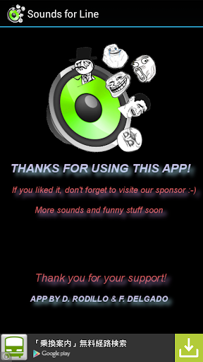 **DISCLAIMER: The developing team of Sounds for Line wants to state that this application is completely independent and not affiliated with Line Corporation. Line is a trademark of Line Corporation and we don't own any of the rights associated to these trademarks. The only purpose of this application is to collaborate with the user community created around Line (tm), to make it stronger and to provide the users new quality content.