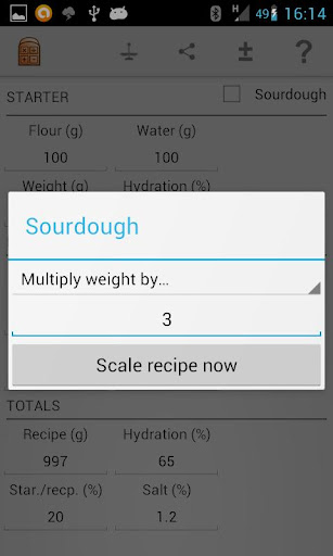 * Allows calculations for dough pre-ferments such as biga, sponge and poolish