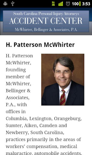 The Law Firm of McWhirter, Bellinger & Associates has more than 30 years legal experience helping injury victims in South Carolina with all forms of personal injury such as auto accidents, truck accidents and train or boating accidents, medical malpractice and birth injuries, workers' compensation, wrongful death and premises liability.