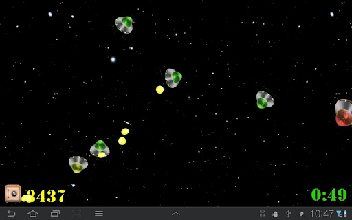 The game is very simple and accessible. Replenish the pirate chest knocking the coins from the yellow-greens of merchant ships, and stay away from red andblue patrol ships. Bonuses on merchant ships is directly proportional to their velocity. Knocking out all the coins in one motion across the screen, you will receive a bonus dopolnitellny. Remember the game is limited. You can comparetheir results through the service OpenFeint. If you have not used OpenFeint - the game will register you when you first start ..