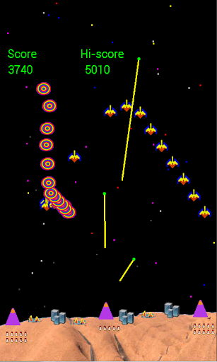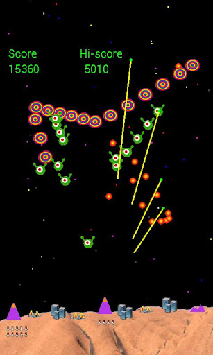 There's lots of action in this retro space invaders style arcade game. For those familiar with the arcade classics its like a cross between galaga and missile command.