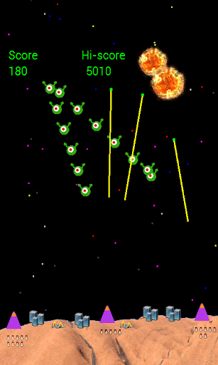 There's lots of action in this retro space invaders style arcade game. For those familiar with the arcade classics its like a cross between galaga and missile command.