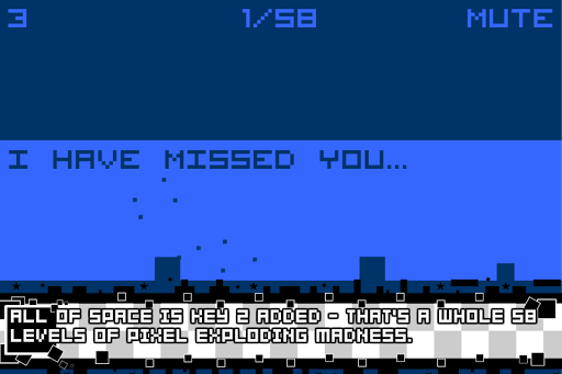 Ported over to Android by popular demand! From the hit flash game that has accumulated over 30 million plays! Now you can feel the frustration of exploding pixels on your Android device! You won't want to put you're device down after you get a taste of Space is Key!