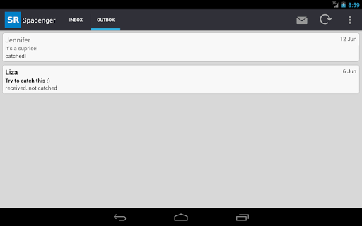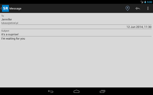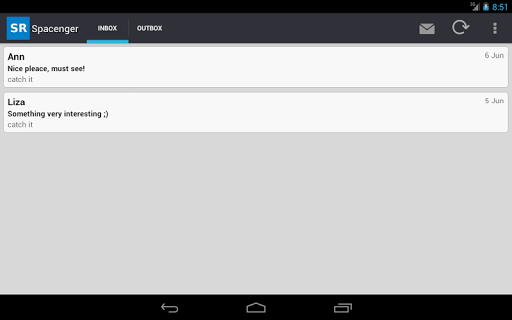 Just click new message button, application will find your location. Write the message and send it. Recipient will receive email notification that you sent him a message. But to read the content he must get Spacenger app and go to the place where the message was leave.