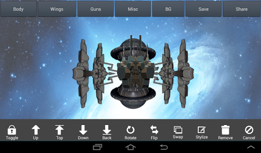 Spaceship Builder is a fun app that allows you to build awesome space or rocket ships which you can then share with your friends! Use your creativity to piece together craft part by part. Build as many ships as you want, there are many combinations!