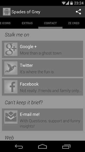 If you have funny insights or anything else (constructive) you'd like to share with me, please email me at *support@circlesmod.dk* or reach out via Twitter or Google+ (links are in the app)