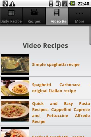 Not only will you find over 150 delicious spaghetti recipes, but they are broken down into convenient categories according to they type of spaghetti you want to make. Video recipes will show you exactly what to do, and Daily Recipes will give you brand new recipes EVERY DAY!