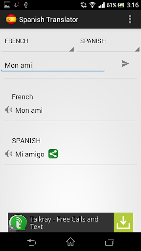 -Can share the translation via Facebook, Whatsaap, Skype, Google+, Twitter, SMS and any other messaging platforms