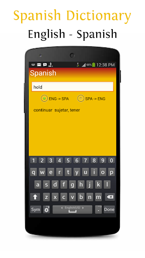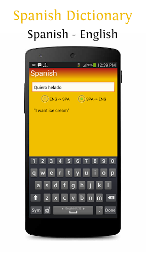 Spanish is English - Spanish dictionary. It can translate word or sentence. Spanish has offline master data for limited word. To get more word translated and sentence need internet connection.