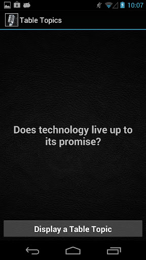 The Table Topics tool provides you with a good inventory of topics on the go. Every time you hit the Display a Table Topic button a new topic is displayed.