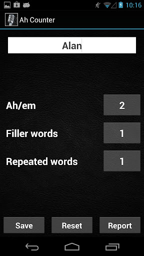 Forget the old caveman way of counting ah's. Simply, click on the buttons on the Ah Counter tool to count ah's, em's, fillers and repeated words. Click on Save to save the Ah Counter record. Saved records can be viewed in the Ah Counter Report.