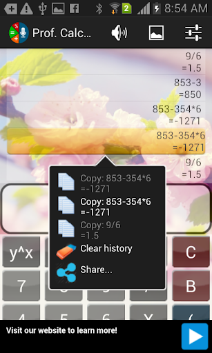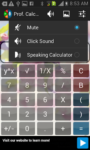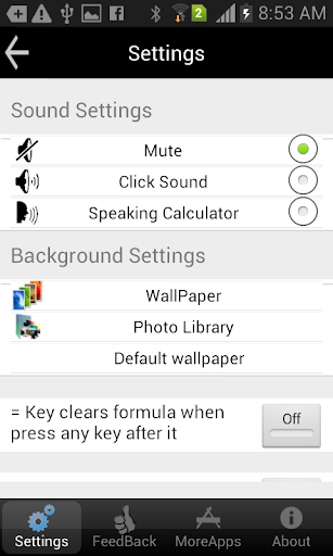 "Speaking Calculator" is an app that offers you a new great feature on all Calculators apps' world, This feature is the sound on the calculator. " Speaking Calculator" isn't just have wonderful backgrounds, great history that saving all your old calculates, But , it also can say (the number or all the Equations) loudly Or silent as your need, Finally we interested in your opinion on it ,so, please write your feedback...