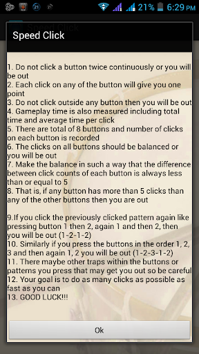 The Speed Click is a simple and interesting game where you can play with a set of buttons (total 8) based on some rules. Make sure you read the instructions before playing the game.