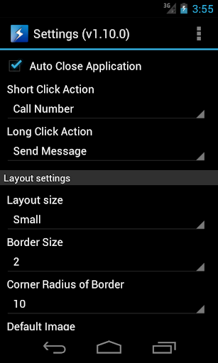 Define what happens on short or long click. Choose between instant call, sending a text message or just viewing the contact.