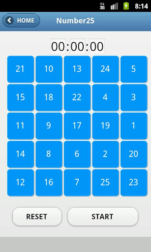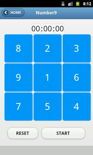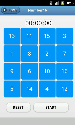 数字などを順番にタップして消し、タイムを競うシンプルなゲームです。