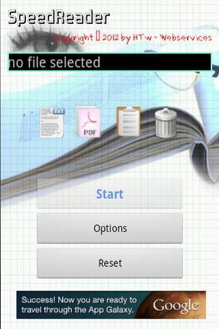 Mit dem SpeedReader kannst du dir Texte aus Dateien oder der Zwischenablage schnell durchlesen. Die Wörter erscheinen immer an derselben Stelle, so daß keine Scrollen mehr nötig ist. So lassen sich Texte schneller aufnehmen, da das Auge auf einen Punkt fixiert ist.