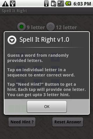 Spell It Right is a spelling puzzle game. With more then 25,000 words, this game is going to keep people of all age busy.
