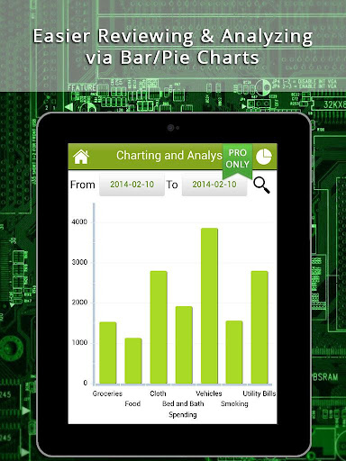 * Easier Reviewing & Analysing - You can log and analyze your spending using the ‘Charting & Analysis’ feature with "Bar & Pie Charts" for analysis and review. (Pro version only)