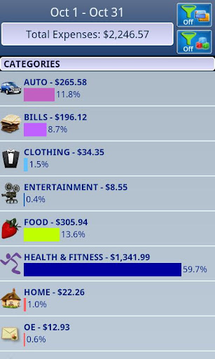 • Graphs. In one look you have all the information you want by day, week, month, year or any period of time you want. You can choose between pie and bar graphs.