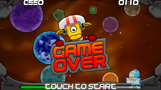Fly from planet to planet by simply tapping the screen. The smaller the planet the more points you get and points are also awarded for distance traveled. Keep an eye on you fuel but don’t worry we have coded it so it drops between 2 planets so its always accessible.