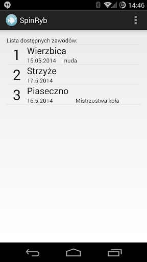 Darmowy program ułatwiający prowadzenie obliczeń zawodów wędkarskich spinningowych. Powstały na zlecenie koła wędkarskiego PZW 17 Piaseczno. Pozwala na wygodne prowadzneie statystyk wielu zawodów jak i przechowywanie nazwisk zawodników w bazie danych. Bardzo wczesna wersja - może zawierać błędy,