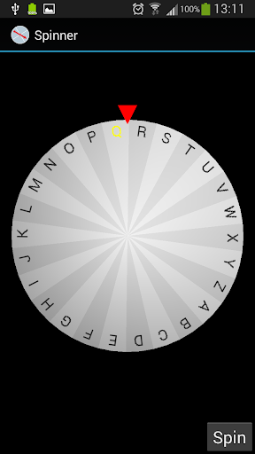 The sectors of the spinner can be customized to be numerals, alphabet letters (latin, cyrilic, arabic and greek alphabets are supported), players and answers to common game questions.