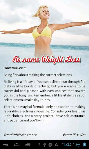 * Why You Need To Re-name Weight Loss. The secrets behind what you call slimming down.