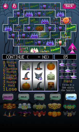 Reach the pumpkin in the center of the web to get the jackpot with a repeat change..