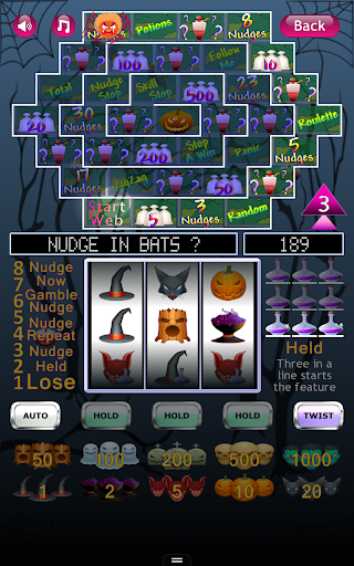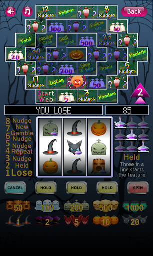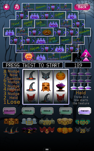 A statistics screen is included to see how many times you have won. Press the flashing red spin button to start the spooky Halloween slot machine reels moving. We wrote this spooky Halloween slot machine so you can have fun playing a slot machine without gambling real money. Thank you for downloading and playing our spooky Halloween slot machine.