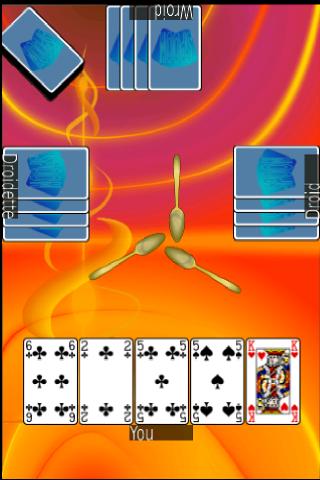 Spoons, also known as Pig and Tongue is a fast-paced game of matching and bluffing family of card games. It is played in multiple rounds and each player's objective is to be the first in the round to have four of a kind, or to not be the last player to grab a spoon. Once one spoon is taken, everybody attempts to get the remaining spoons