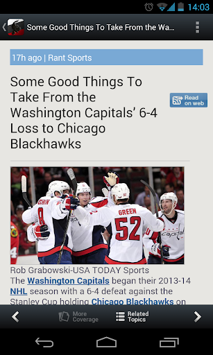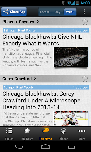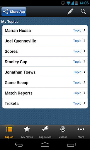 * Customized news feed - if you want to follow specific team/player like ' Jonathan Toews' - no problem. Just select the topics you want to follow and press on them in the topics menu.