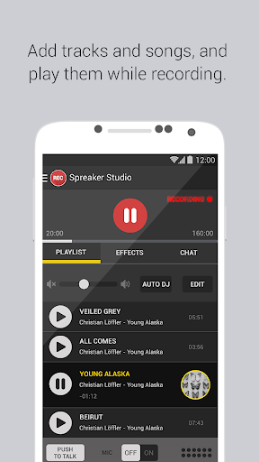 Spreaker工作室将您的设施变为一个设备齐全的广播演播室,让您可以现场直播,或预先录制播客,并同时增加曲目和声效。