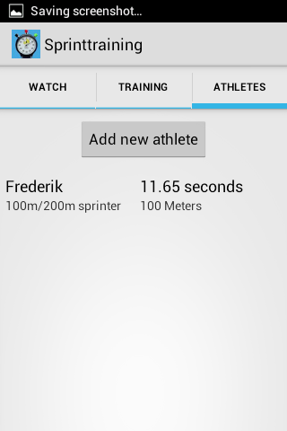 Here you save your data (name, personal best time with it’s sprint distance, 100m/200m sprinter or 400m sprinter) or all your athlete’s data if you are a coach, which are always modifiable. Also you can calculate all your personal bests for all sprint distances. Without these data a lot of functions of “Sprint Training” won’t work. To access the whole advantage of this app you should enter your sprinting data. (You get 2 sample athletes to test the app)