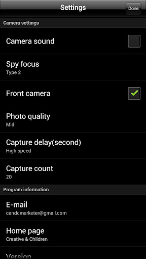 ✔ Spy Camera allows you to takes pictures only with black screen and it’s completely silent.