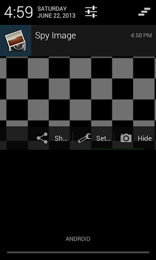 As the application starts you'll see in the middle of the screen small white floating box and notifications icon at top of screen, floating box is a camera trigger, notification is for managing application